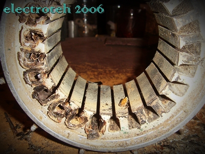 Статор двигателя после рихтовки электротехнического железа Это явление также опасно тем что в электромоторах высокой мощности может вызвать серьёзные повреждения электростали (прожиги листов, наплавление меди в глубине паза).