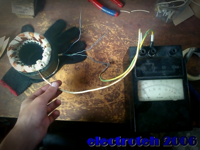 В случаях, когда мест пробоев невидно, обмотка проверяется на наличие замыкания на корпус двигателя, на обрыв проводников, на наличие витковых замыканий и на омическое сопротивление фаз.