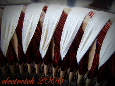 Бандажирование лобовой части лентой шириной 15 мм 3 kW / 960 min ¯¹ Суть бандажирования заключается в том, чтобы стянуть катушки так, чтобы исключить их перемещение в процессе работы двигателя.